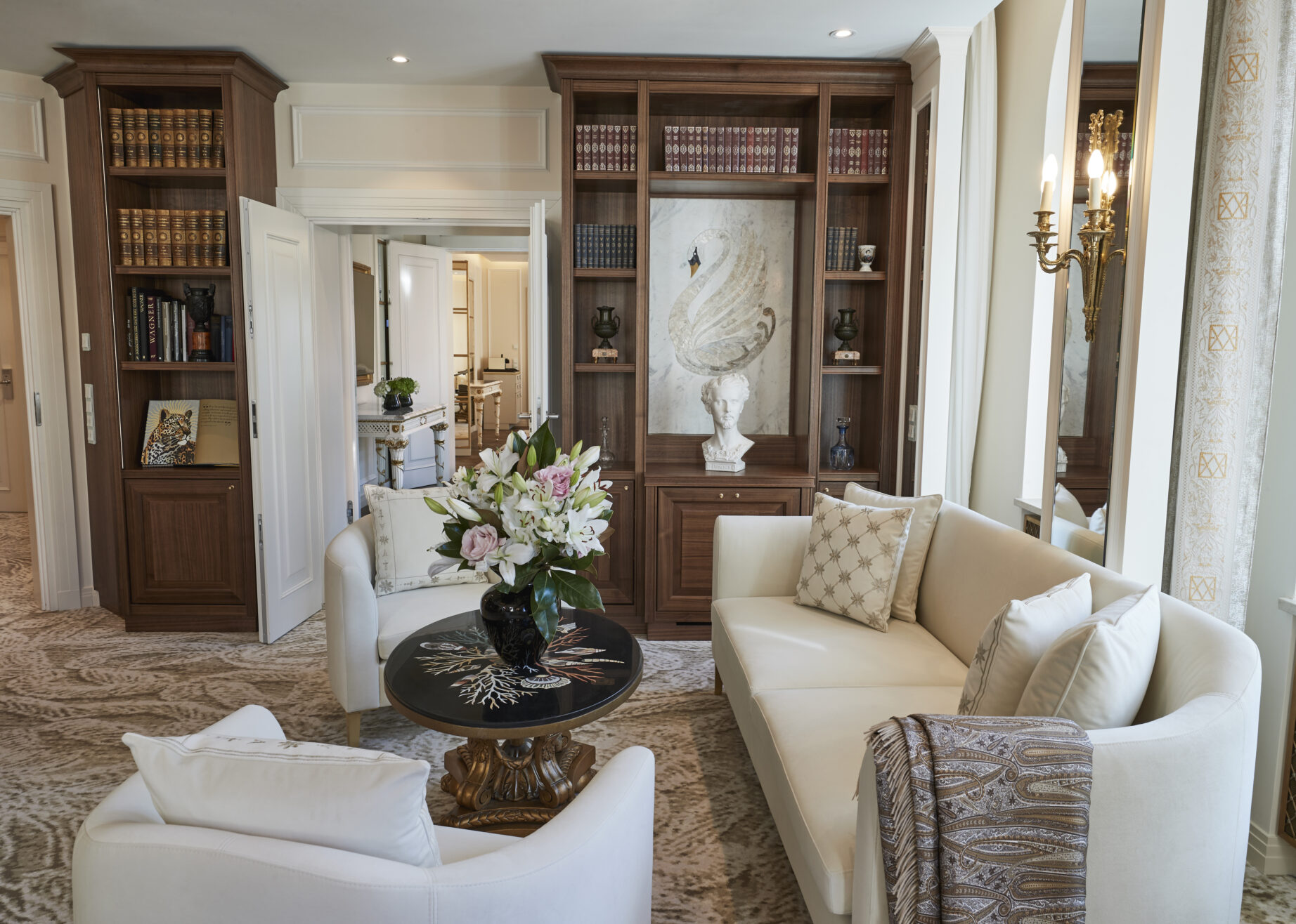 In der Ludwig Suite des Hotel Vier Jahreszeiten Kempinski in München trifft edles Design auf feinstes Handwerk. Sämtliche Holzelemente – von der eleganten Bibliothek über stilvolle Wandvertäfelungen bis hin zu individuell gefertigten Möbelstücken – wurden mit höchster Präzision und einem Gespür für Ästhetik umgesetzt. Verarbeitet wurden ausgewählte Hölzer, veredelt durch feine Oberflächen und perfekte Verarbeitung. Jedes Stück ein Unikat – geschaffen, um Beständigkeit, Qualität und zeitlose Eleganz spürbar zu machen.